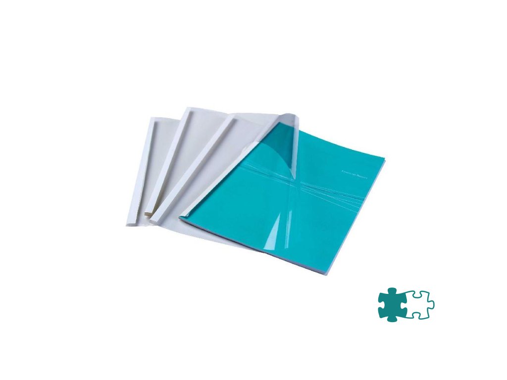 Obálka k zariadeniam na tepelnú väzbu s prednou stranou z priehľadnej polyesterovej fólie a zadnou stranou z bieleho kartónu hrúbky 200 g v saténovej úprave. Kapacita listov 101-120. Balenie 100 kusov.Dodatočné parametre