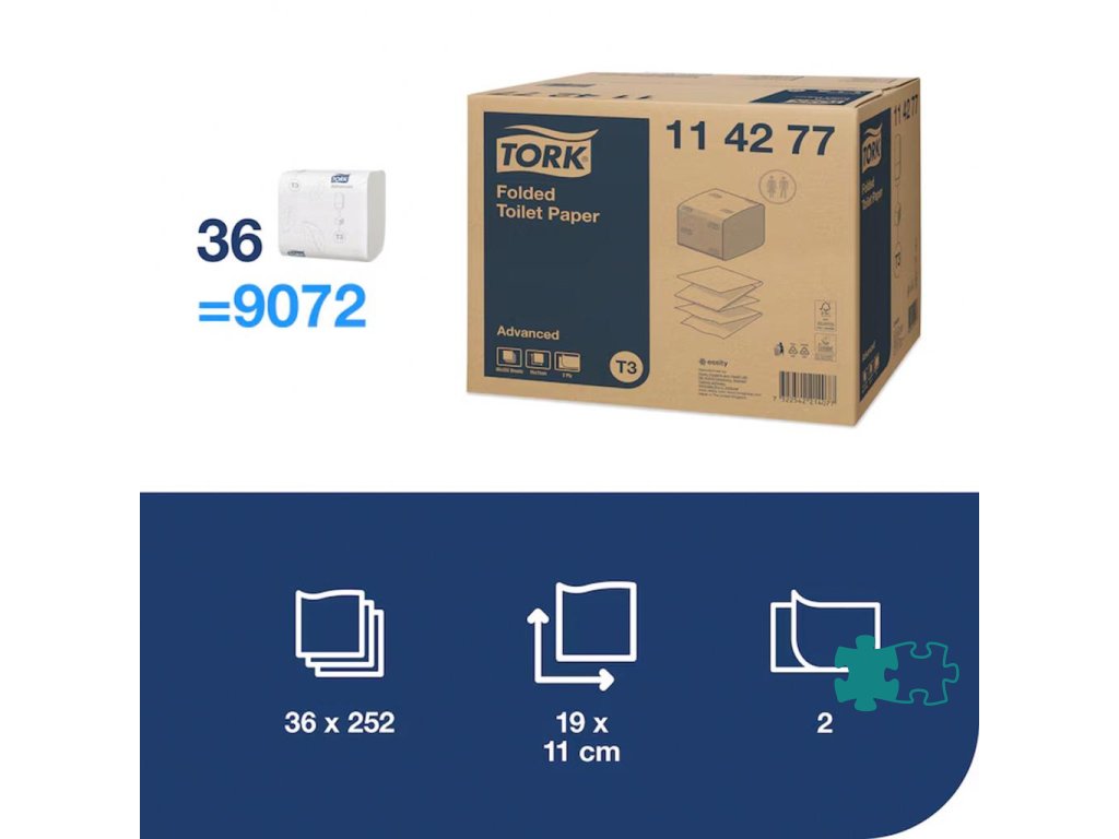 Toaletný papier 2-vrstvový skladaný TORK Advanced T3, 252 ks