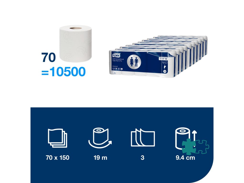 Poskytnite svojim hosťom pohodlie domova aj ďaleko od neho vďaka Tork Premium konvenčnému toaletnému papieru v kotúči. Tento jemný toaletný papier ponúka výnimočný vzhľad a pocit so správnou výkonnosťou pre toalety a umyvárne s nízkou návštevnosťou.Atraktívny motív: navrhnutý, aby zapôsobil