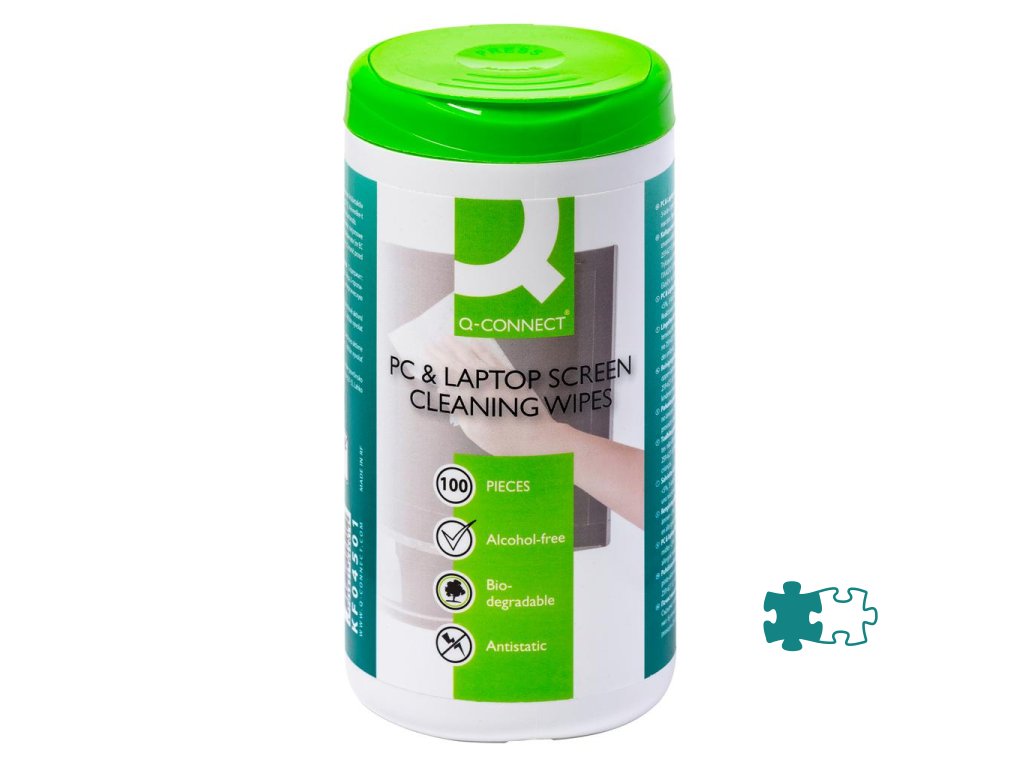 Mokré utierky balené v dóze vhodné na notebooky, LCD, TFT a plazmové obrazovky. Bez obsahu alkoholu, nehorľavé. V balení 100 útržkov.Biologicky odburateľný.