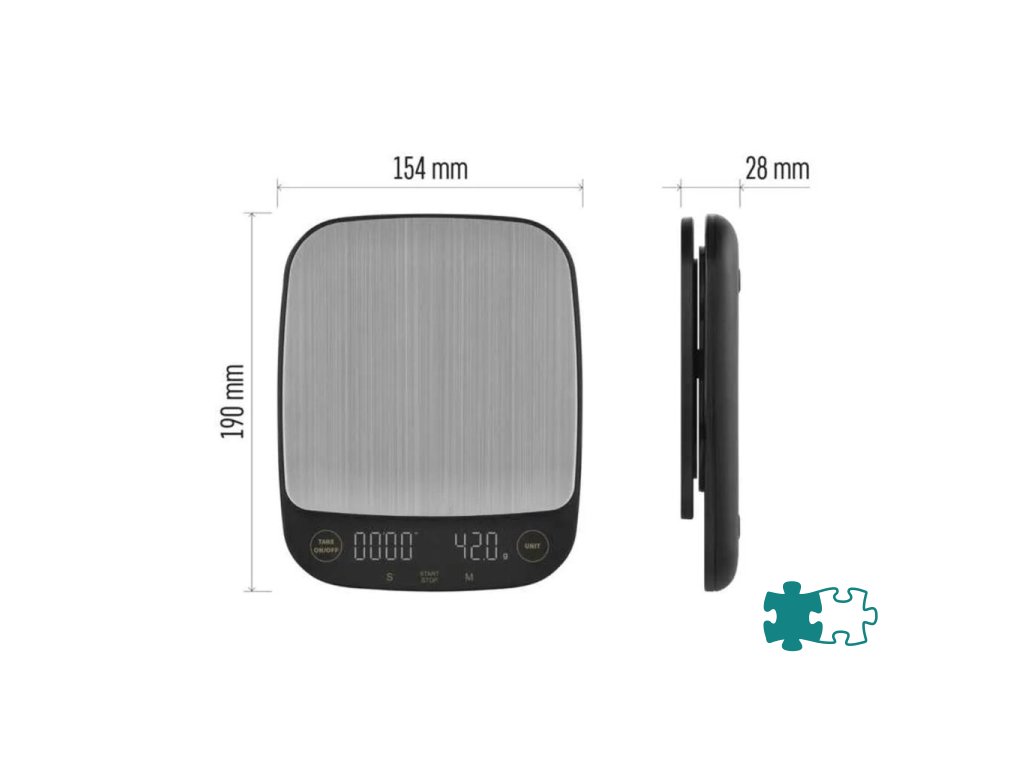 Kuchynská váha, LCD displej, podsvietený displej, povrch váhy: ABS plast + nerez, funkcia dovažovania, max. záťaž: 3 kg, presnosť váženia: 0,1 g, jednotky váhy: g, lb, oz, indikátor preťaženia, automatické vypnutie: po 1 minúte, indikácia slabých batérií, farba: čierna, napájanie: 3× 1,5 V AAA (súčasťou balenia), rozmer: 154 × 28 × 190 mm, predajný obal: 1 ks,, záručná doba: 2 rokyDodatočné parametre
