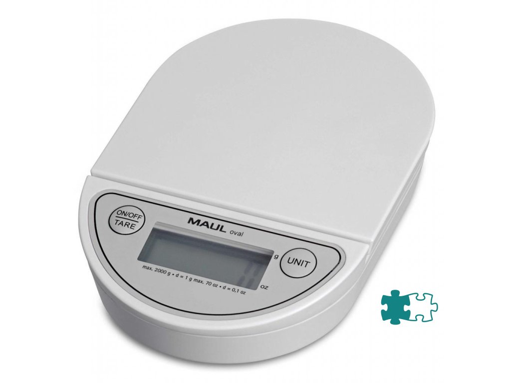 Elektronická váha oválneho tvaru s jedným ovládacím tlačidlom a funkciou automatického vypnutia a automatického vynulovania. Minimálna váha 2 g. Dodávaná s batériou. Rozmery 180 × 120 × 30 mm. Materiál nárazuvzdorný plast. Farba biela. Kapacita 2 kg. Stupňovanie 1 g. Váha nie je určená na použitie v platobnom styku. Napájanie 3V batériou CR2032.Funkcia Tare. Rozmery vážiacej plochy 120 × 120 mm.