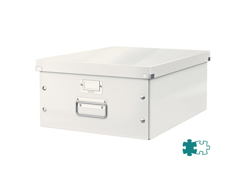Skladacia archivačná krabica vhodná na ukladanie dokumentov formátu A3, fólií, obalov, obálok, zakladačov, katalógov a pod. Rámik na popisovací štítok, laminovaný povrch pre lepšiu a trvalejšiu ochranu, kovové rohy a robustné kovové úchyty pre ľahký prenos. Moderný design, ktorý vyzerá skvelo doma i v kancelárii. Jednoduché zloženie a vysoká stabilita vďaka pevnej konštrukcii. Rozmery (š × v × h) 369 × 200 × 482 mm. Farba biela.Dodatočné parametre