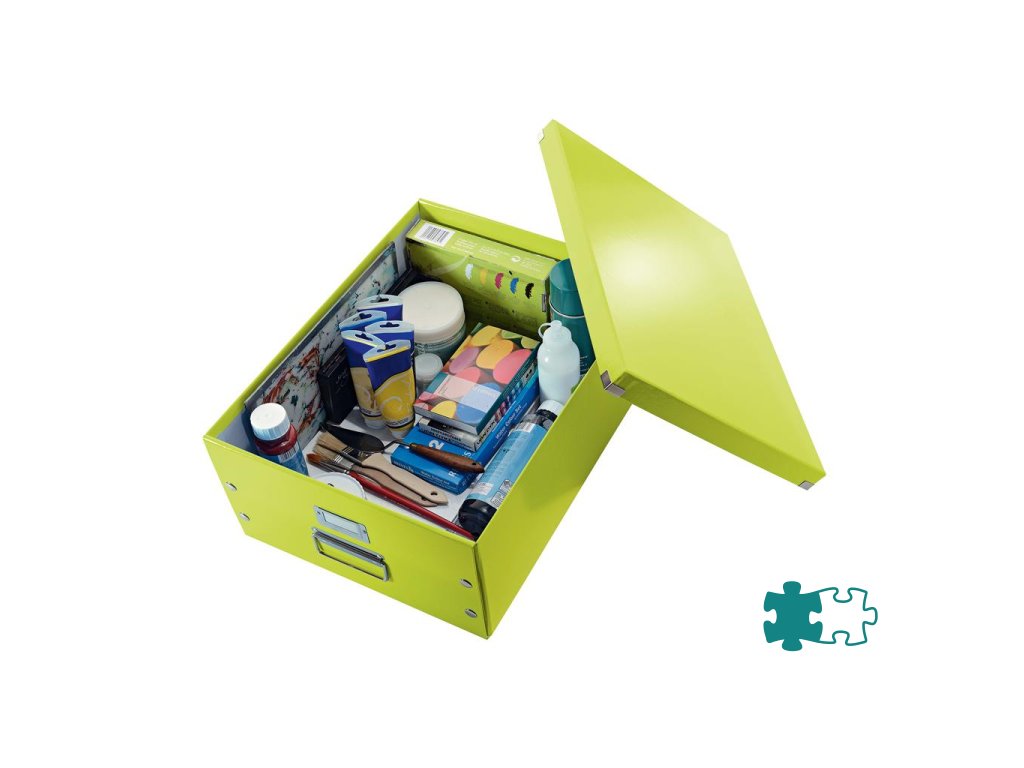 Skladacia archivačná krabica vhodná na ukladanie dokumentov formátu A3, fólií, obalov, obálok, zakladačov, katalógov a pod. Rámik na popisovací štítok, laminovaný povrch pre lepšiu a trvalejšiu ochranu, kovové rohy a robustné kovové úchyty pre ľahký prenos. Moderný design, ktorý vyzerá skvelo doma i v kancelárii. Jednoduché zloženie a vysoká stabilita vďaka pevnej konštrukcii. Rozmery (š × v × h) 369 × 200 × 482 mm. Farba zelená.Dodatočné parametre