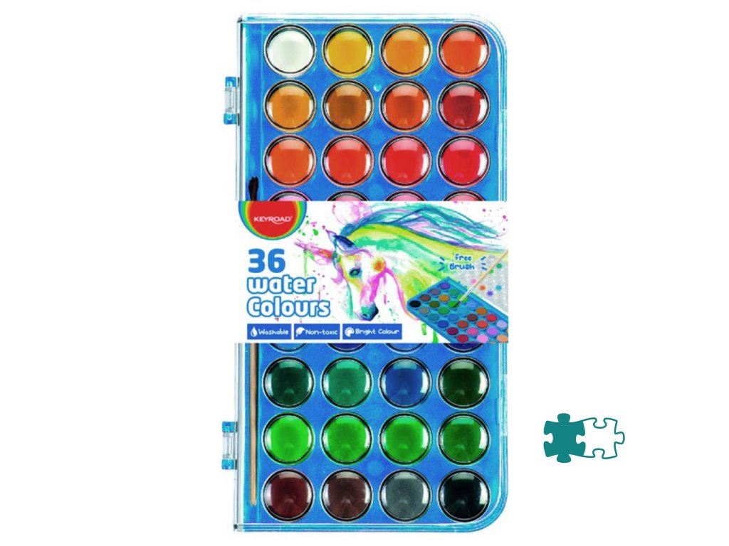 Vodové farby KEYROAD so štetcom, 36 farieb