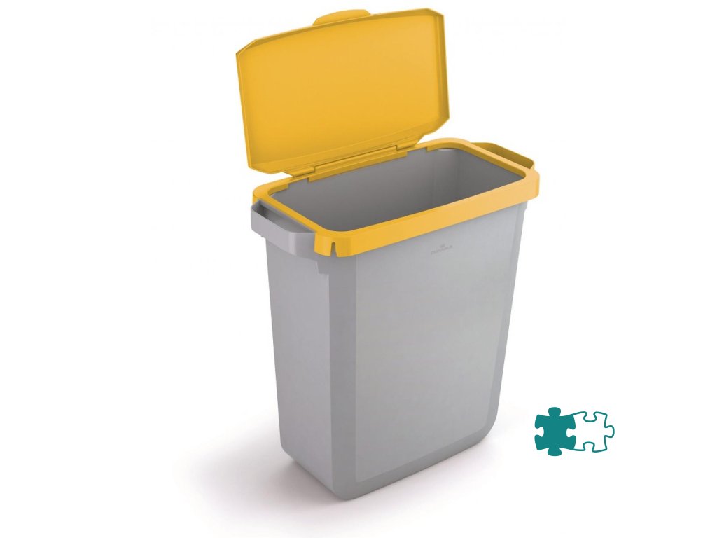Obdĺžnikový rám s vekom na koše DURABIN 60 so systémom clip-on, ktorý umožňuje pevné uchytenie na koše. Farba žltá.Dodatočné parametre