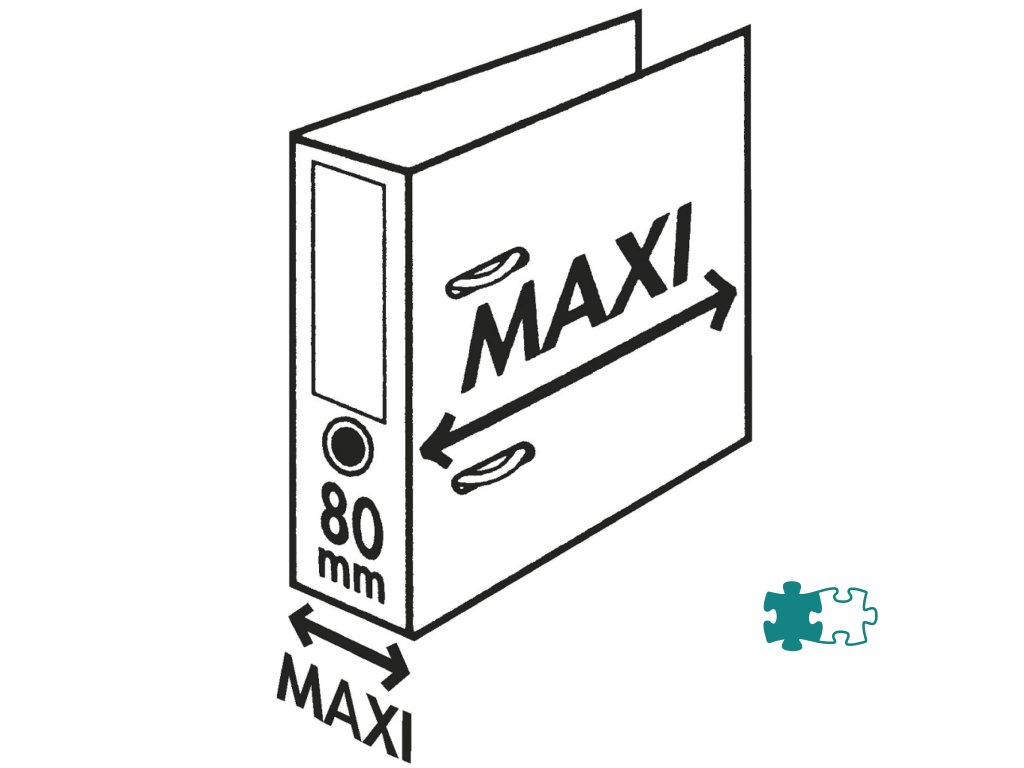 Celoplastový zakladač formátu A4 maxi so špičkovou pákovou mechanikou. Vybavený chrbtovým krúžkom, vreckom s vymeniteľným chrbtovým štítkom, ochranným spodným kovaním a uzatváracím mechanizmom. Šírka chrbta 8 cm. Väčšie balenie 10 ks.Chrbát: 8 cm