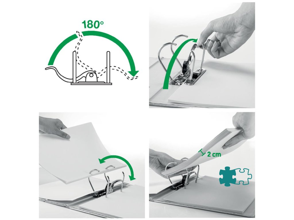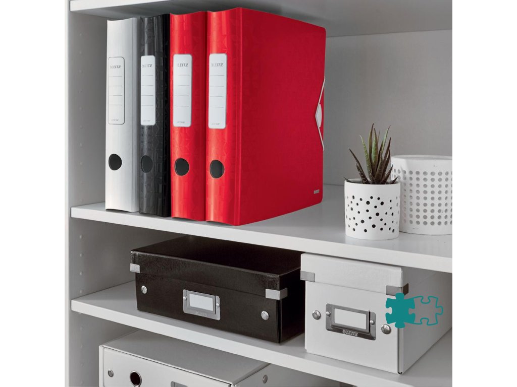 Mobilný zakladač v žiarivej WOW farbe s dvojfarebným efektom na organizáciu dokumentov v kancelárii i na cestách. Ľahký materiál a ergonomický dizajn. Dvojvrstvový PP materiál vyplnený penou z tzv. Polyfoamu, ktorý je extrémne odolný a ľahký. Unikátna páková mechanika s otvorením o 180 ° umožňuje o 50 % širšie otvorenie a o 20 % rýchlejšiu prácu so zakladačom. Uzatváranie na gumičku. Vnútorný obal na voľné papiere, CD/ DVD a vizitky. Zaoblený chrbát a praktická úchytka na pero. Kapacita 350 listov A4 (80 g/ m²). Chrbát 6,5 cm. Farba červená.Dodatočné parametre