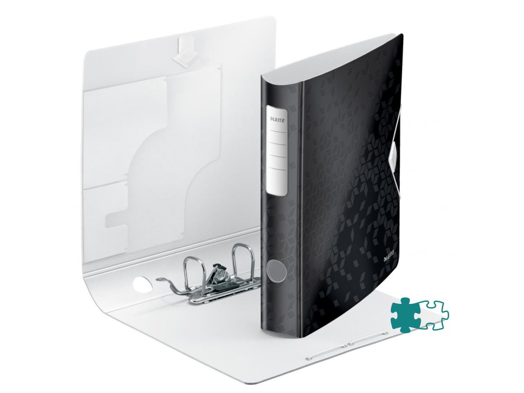 Mobilný zakladač v žiarivých WOW farbách s dvojfarebným efektom na organizáciu dokumentov v kancelárii i na cestách. Ľahký materiál a ergonomický dizajn. Dvojvrstvový PP materiál vyplnený penou z tzv. Polyfoamu, ktorý je extrémne odolný a ľahký. Unikátna páková mechanika s otvorením o 180 ° umožňuje o 50 % širšie otvorenie a o 20 % rýchlejšiu prácu so zakladačom. Uzatváranie na gumičku. Vnútorný obal na voľné papiere, CD/ DVD a vizitky. Zaoblený chrbát a praktickáúchytka na pero. Kapacita 350 listov A4 (80 g/ m²). Chrbát 6,5 cm. Farba čierna.