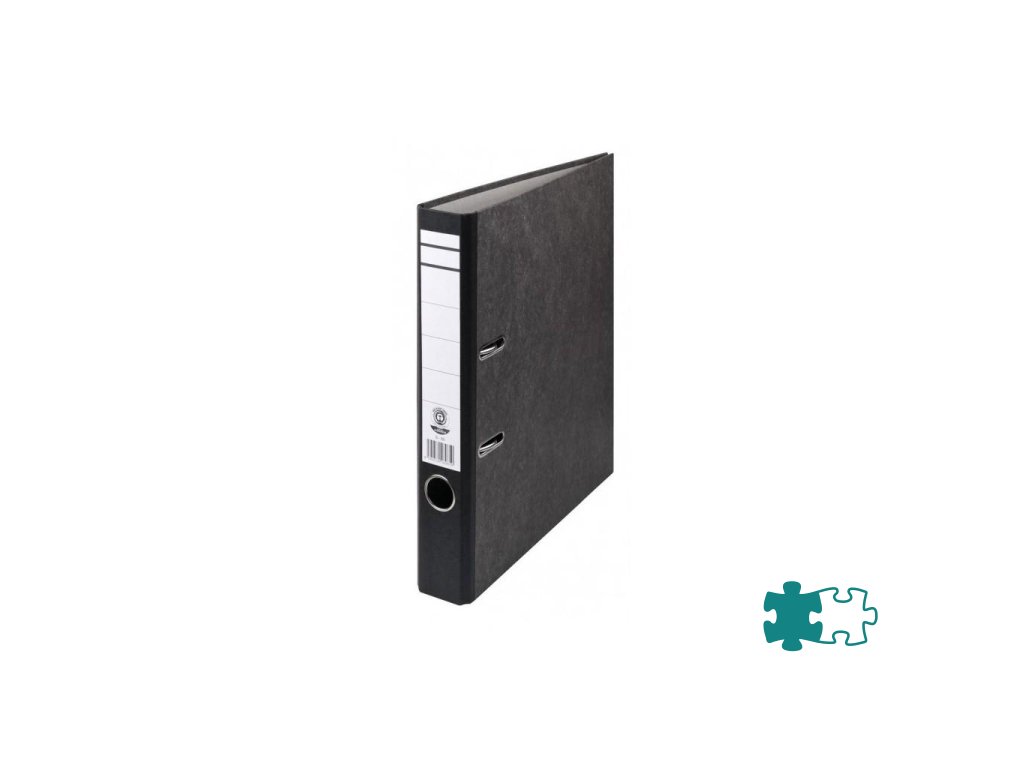 Zakladač so štruktúrovaným papierovým poťahom mramorového vzoru, formát A4. Vybavený kovovým prítlakom, chrbtovým krúžkom a nalepeným chrbtovým štítkom. Šírka chrbta 5 cm. Väčšie balenie: 25 ks. Farba čierna.Chrbát: 5 cm