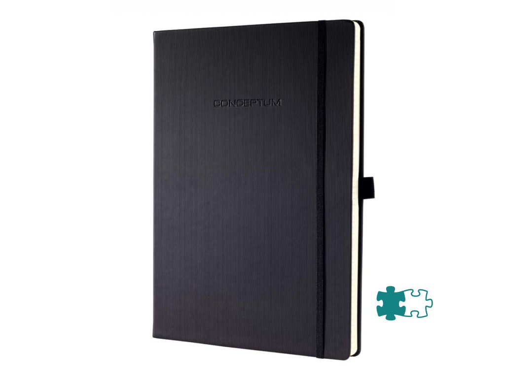 Zápisník s elastickou gumičkou, chrániacou pred nechceným otvorením. Pevná väzba s jemným ryhovaním. Čistý a jednoduchý dizajn až do posledného detailu. Moderný, elegantný, so zameraním na to podstatné. To je CONCEPTUM®, víťaz medzinárodnej ceny za dizajn. Nóbl sofi stikované zápisníky jedinečného štýlu, ktorý môžete vidieť aj cítiť, sú vhodné pre profesionálnu, ako aj pre osobnú potrebu. S citlivosťou volené materiály a vynikajúca kvalita sú skombinované so skutočnou eleganciou. Zápisníky sú vybavené osobným adresárom, uškom na pero, 2 lacetkami, vreckom na uchovanie materiálov s miestom na vizitku, k dispozícii je 20 perforovaných strán pre potreby vytrhnutia poznámok, strany v zápisníku sú číslované.Formát A4, úprava linajková. Počet strán 194. Farba čierna.Dodatočné parametre