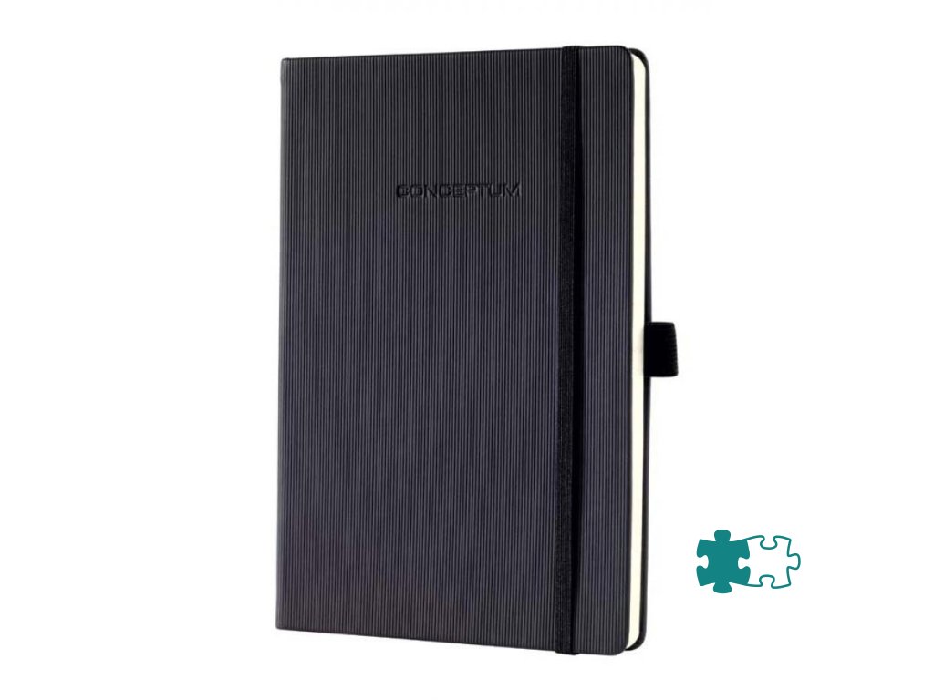 Zápisník s elastickou gumičkou, chrániacou pred nechceným otvorením. Pevná väzba s jemným ryhovaním. Čistý a jednoduchý dizajn až do posledného detailu. Moderný, elegantný, so zameraním na to podstatné. To je CONCEPTUM®, víťaz medzinárodnej ceny za dizajn. Nóbl sofi stikované zápisníky jedinečného štýlu, ktorý môžete vidieť aj cítiť, sú vhodné pre profesionálnu, ako aj pre osobnú potrebu. S citlivosťou volené materiály a vynikajúca kvalita sú skombinované so skutočnou eleganciou. Zápisníky sú vybavené osobným adresárom, uškom na pero, 2 lacetkami, vreckom na uchovanie materiálov s miestom na vizitku, k dispozícii je 20 perforovaných strán pre potreby vytrhnutia poznámok, strany v zápisníku sú číslované.Formát A5, úprava linajková. Počet strán 194. Farba čierna.Dodatočné parametre