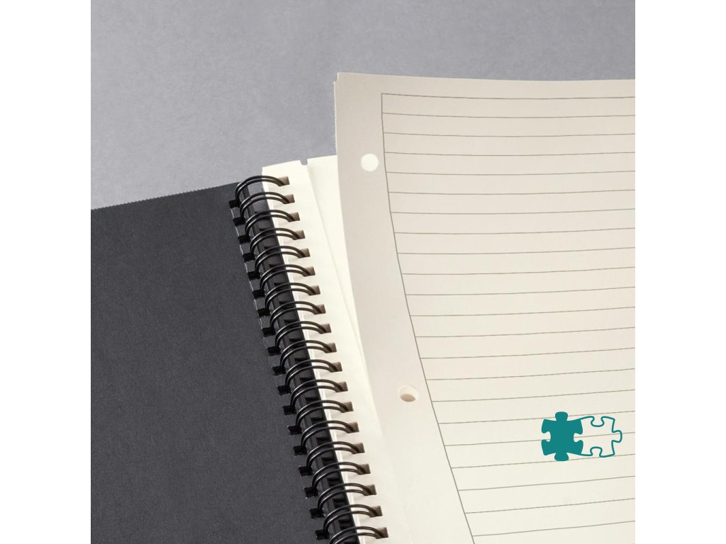 Zápisník s kovovou špirálou po dlhšej strane, vnútorným vreckom na zadnej vnútornej strane, dierovanými stranami s mikroperforáciou. Pevné čierne dosky majú jemné ryhovanie. 160 strán gramáže 80 g / m², formát A5. Farba čierna.Dodatočné parametre