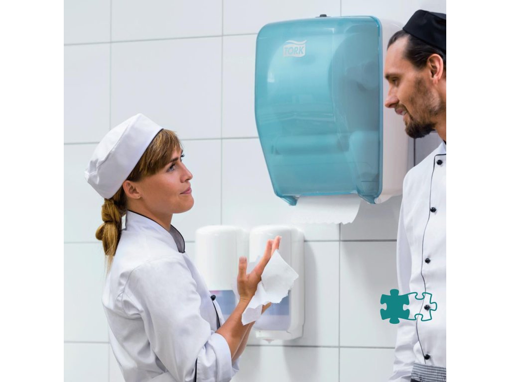Zásobník na papierové utierky v roliach TORK Performance tyrkysový/biely W6