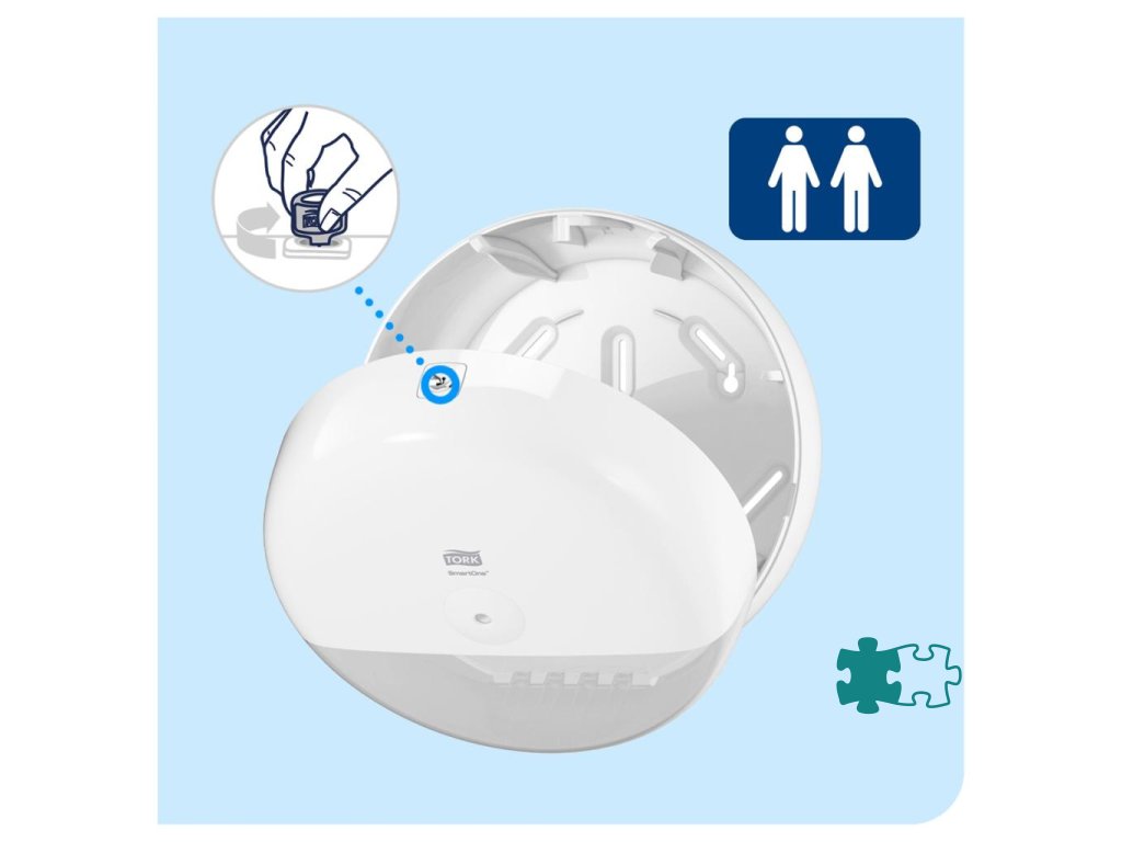 Tork SmartOne® zásobník na toaletný papier v kotúči v dizajne Elevation je moderný a efektívny systém zásobníkov vhodný pre náročné toalety a umyvárne s vysokou návštevnosťou. Dávkovanie po útržkoch pomáha znižovať spotrebu až o 40 % v porovnaní s tradičnými jumbo kotúčovými zásobníkmi.Materiál: plast