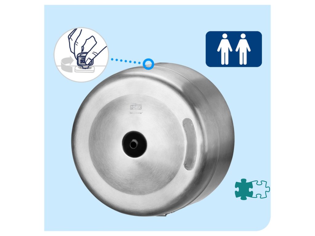 Tork SmartOne zásobník na toaletný papier v kotúčoch je účinný a veľmi robustný dávkovací systém vhodný pre náročné toalety a umyvárne s vysokou návštevnosťou. Dávkovanie po útržkoch pomáha znižovať spotrebu až o 40 % v porovnaní s tradičnými jumbo kotúčovými zásobníkmi, čo znamená viac návštev na jeden kotúč.Materiál: kov
