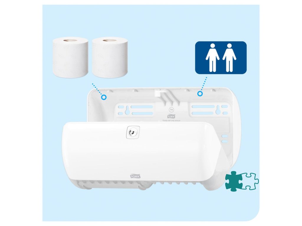 Tork zásobník na toaletný papier v konvenčnom kotúči v dizajne Elevation je vhodný do menej navštevovaných toaliet a umyvární a znižuje údržbu tým, že pojme až dva konvenčné kotúče. Zásobníky Elevation majú praktický a moderný dizajn, ktorý zanecháva v hosťoch dlhodobý dojem.Materiál: plast