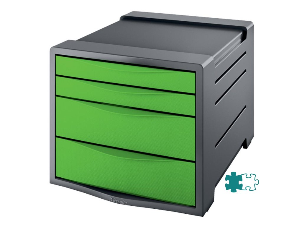 Moderný zásuvkový box so sviežimi farbami a kontrastným tmavosivým telom. Perfektne dopĺňa ostatné výrobky z radu VIVIDA, a dosahuje tak jednotný vzhľad kancelárie. Farba zelená.V atraktívnom dvojfarebnom vyhotovení.