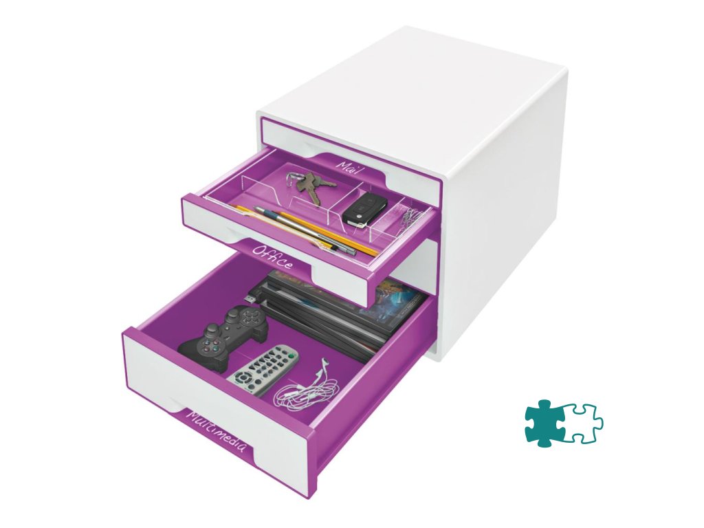 Zásuvkový box Leitz WOW so 4 zásuvkami purpurový