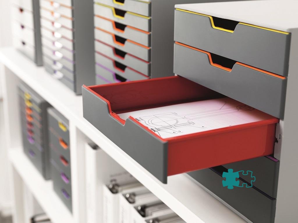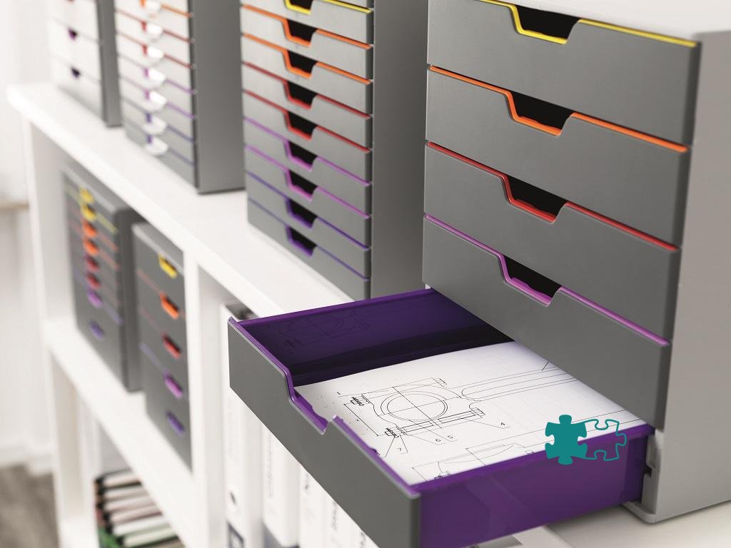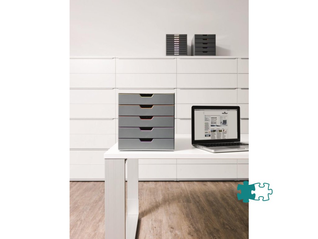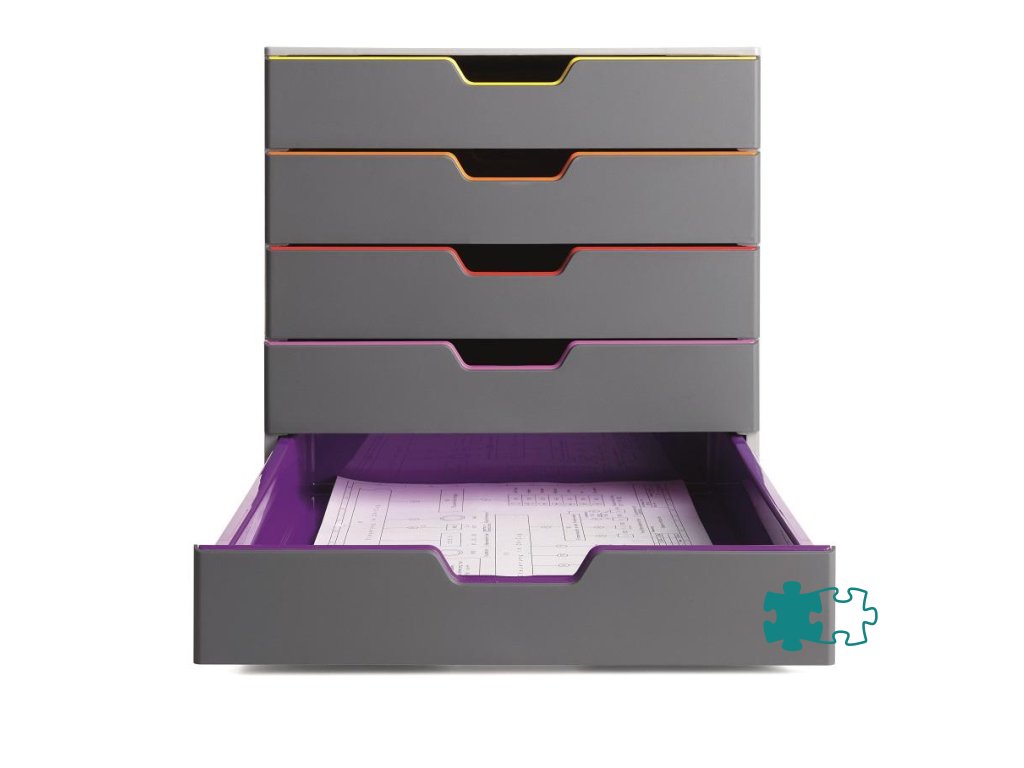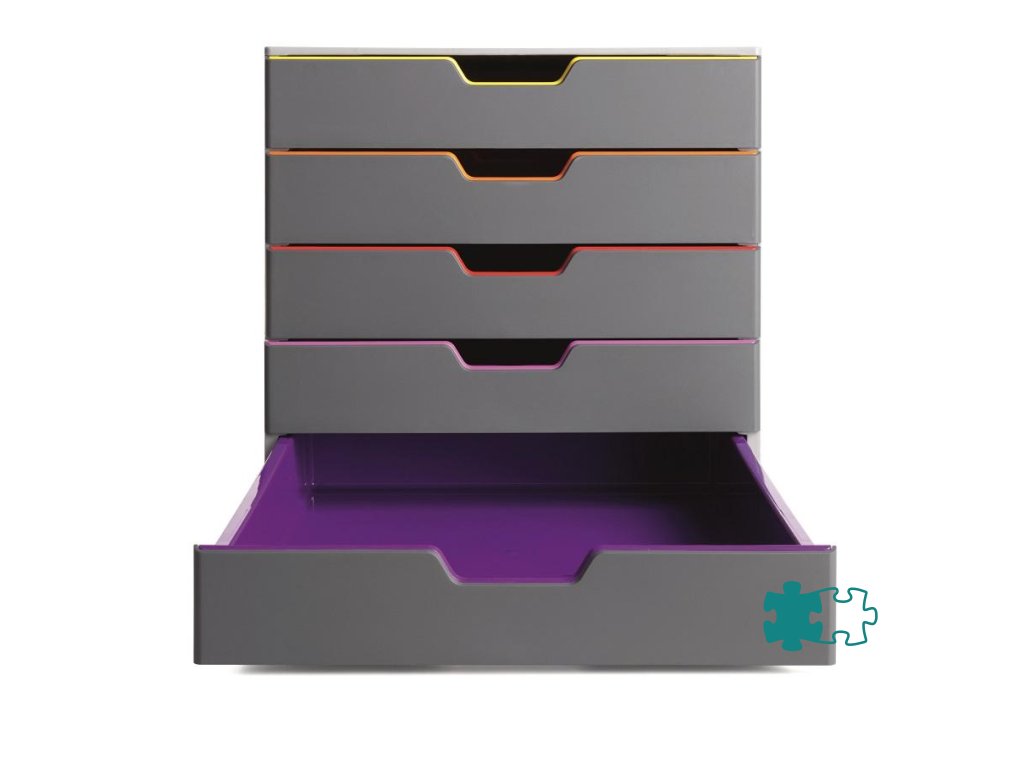 Boxy s 5 zásuvkami s vnútrami dúhových farieb dodajú kancelárii nádych elegancie. Pri ich zatvorení farebné línie iba jemne vystupujú z elegantnej sivej farby, pri otvorení sú žiarivé farby dúhy potešením pre oči. Dodávané s priehľadnými plastovými indexami na označenie obsahu. Boxy sú stohovateľné, zásuvky zabezpečené proti vypadnutiu. Materiál najkvalitnejší ABS plast, tichý a ľahký posun zásuviek, spodná strana s protišmykovou ochranou. Víťaz Product design award 2013. Rozmery (š × v × h) 292 × 280 × 356 mm.Dodatočné parametre