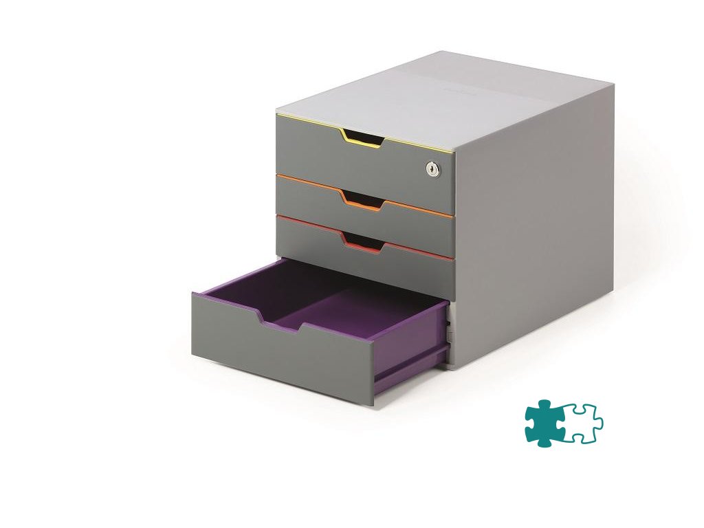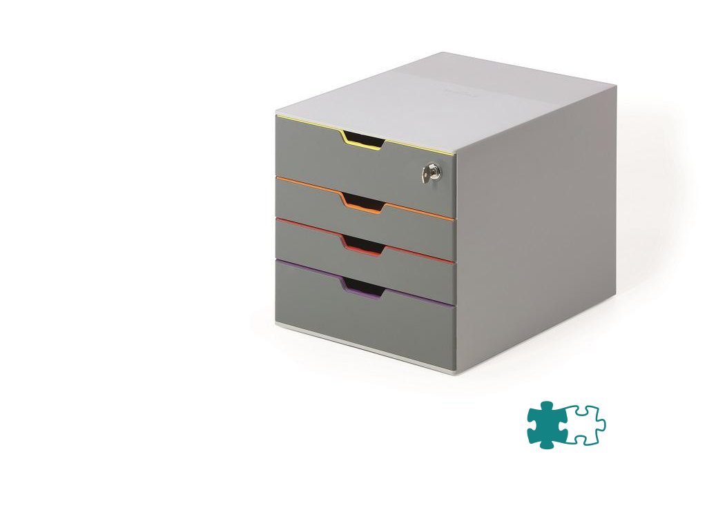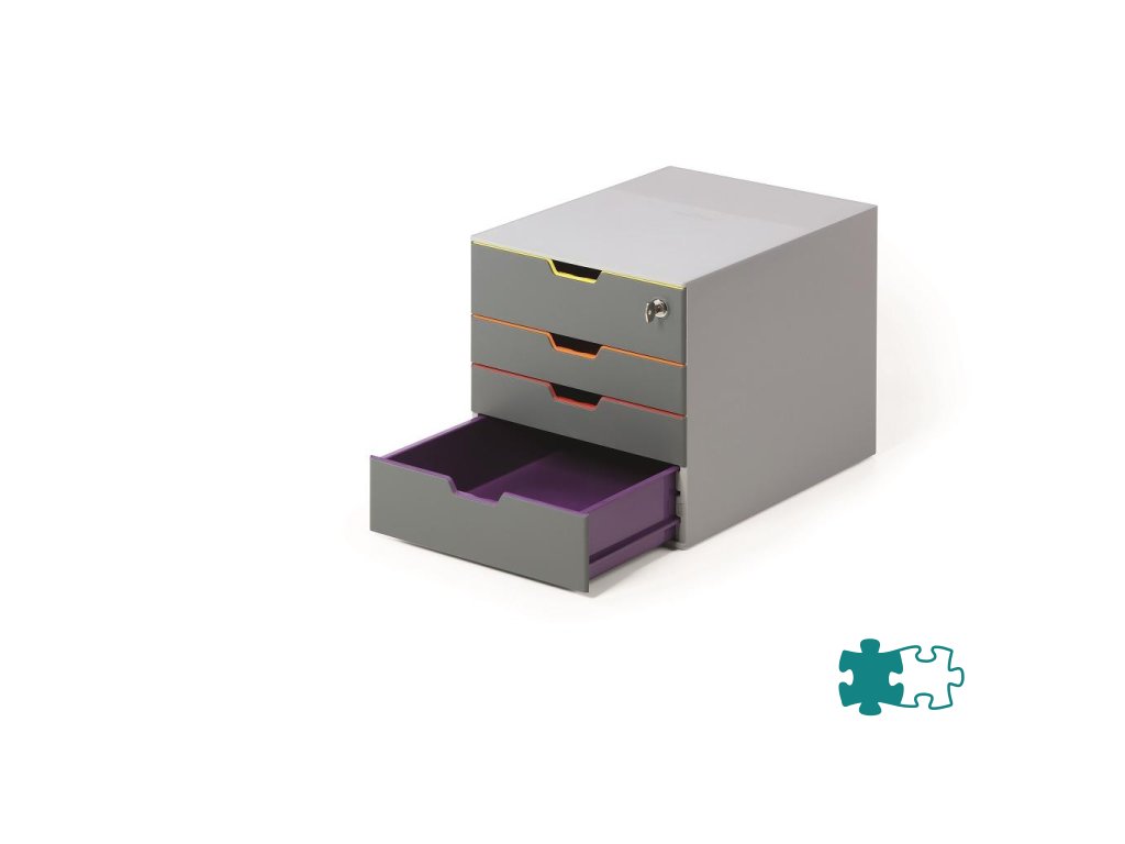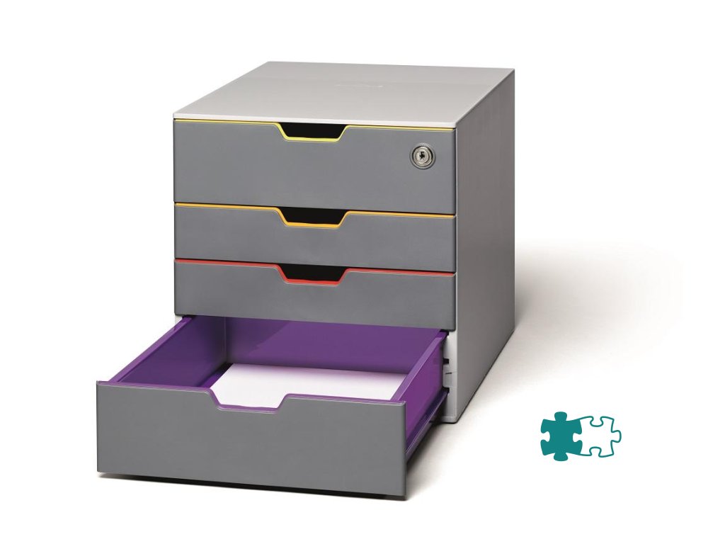 Box s cylindrickou vložkou, dodávaný s 2 kľúčami. 4 zatvorené zásuvky, vrchná a spodná zásuvka vo formáte XXL.Dodatočné parametre