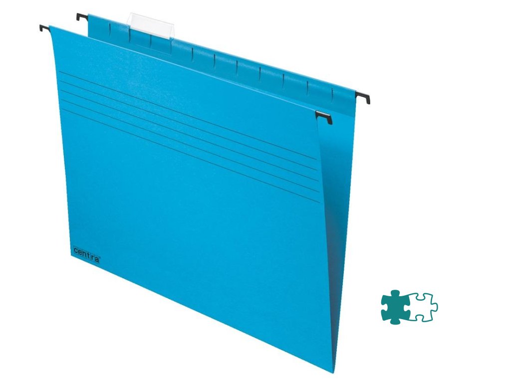 Závesné obaly vyrobené z recyklovaného papiera na dokumenty formátu A4 s prístupom zhora. Lisované dno dovoľuje zvýšiť kapacitu až na 30 mm. Súčasťou obalu je násuvný index z priehľadného plastu s výmenným papierovým štítkom. Index možno umiestniť v 9 rôznych pozíciách. Rozpätie vodiacich líšt 330 mm.Farba: modrá