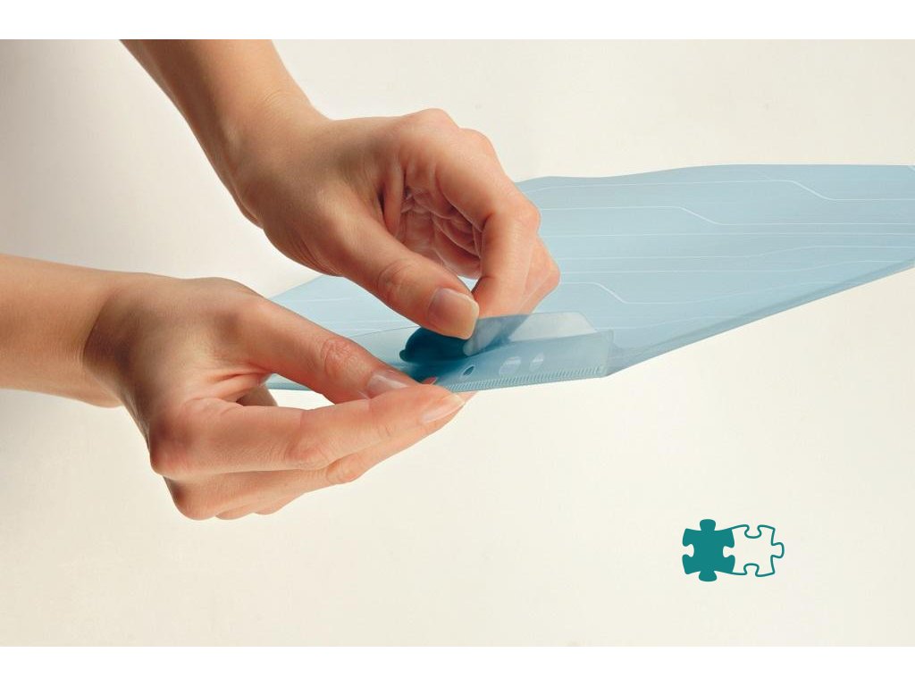 Unikátny závesný obal typu `L`, ktorý kombinuje vlastnosti euroobalov a obalov vďaka patentovanej skrývateľnej multiperforácii do špeciálneho puzdra. Obsahuje rohovú chlopňu, ktorá chráni vložený dokument a vrecko na popis obsahu s vymeniteľným štítkom. Vyrobený z kvalitného priehľadného PP s embosovaným vzorom. Hrúbka 200 um. Kapacita 40 listov papiera formátu A4. Balenie 5 ks.Farba: modrá