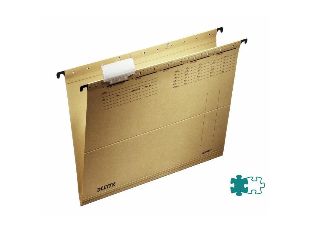 Obal na zakladanie voľných listov do formátu A4. Vnútro vybavené po oboch stranách otvormi na úchytky do rýchloviazačov (nie sú súčasťou). Súčasťou obalu je plastový index s vymeniteľným papierovým štítkom. Väčšie balenie 25 ks.Farba: hnedá