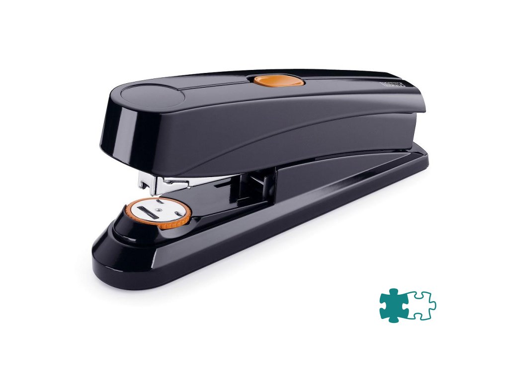Stolová zošívačka z kolekcie Harmony s vlastnosťou plochého zošívania. Zošívanie so zníženým úsilím, ktoré vyžaduje o 70% menšiu silu ako u bežnej zošívačky pri danej kapacite súčasne zošívaných listov. Výmena spiniek pri striedavom zošívaní veľkého a malého počtu listov nie je nutná-systém ,,bypass` umožní použitie iba jednej veľkosti spiniek tým, že spinku ohne do bokov. Vrchný diel z plastu, kovový zásobník s dvojitým vedením spiniek. Kapacita náplne 150 spiniek 24/8 alebo 200 spiniek 26/8. Hĺbka zošívania 6,5 cm. Hmotnosť 680 g. Záruka 25 rokov.Farba: čierna