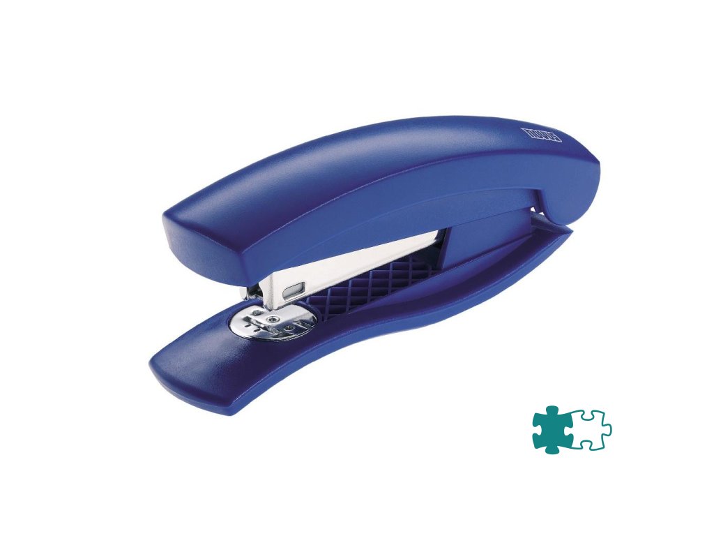 Kancelárska zošívačka na stôl aj do ruky v modernom dizajne. Zásobník spiniek s plastovým osadením a jednoduchým vedením spiniek. Kapacita náplne 100 spiniek 24/ 6 alebo 26/ 6. Hĺbka zošívania 6,5 cm. Hmotnosť 140 g.Farba: modrá