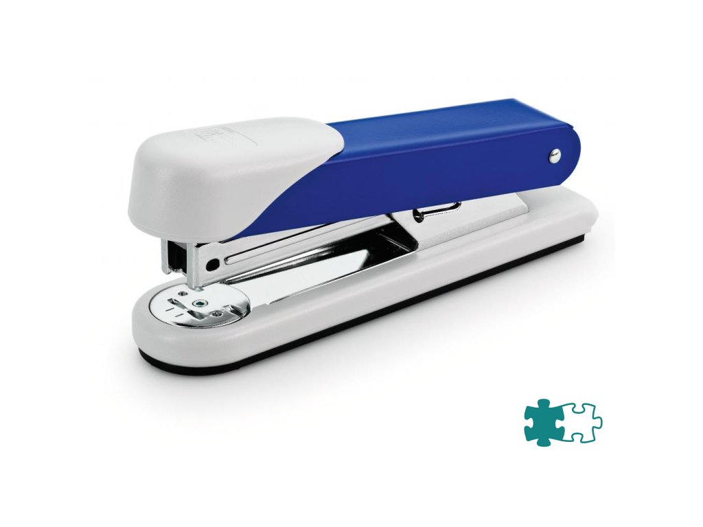Cenovo výhodná celokovová kancelárska zošívačka v klasickom dizajne. Kapacita náplne 100 spiniek 24/6 alebo 150 spiniek 26/6. Hĺbka zošívania 6,5 cm. Hmotnosť 200 g. Záruka 5 rokov.Farba: modrá/sivá