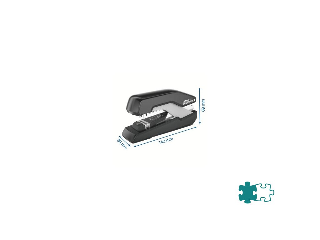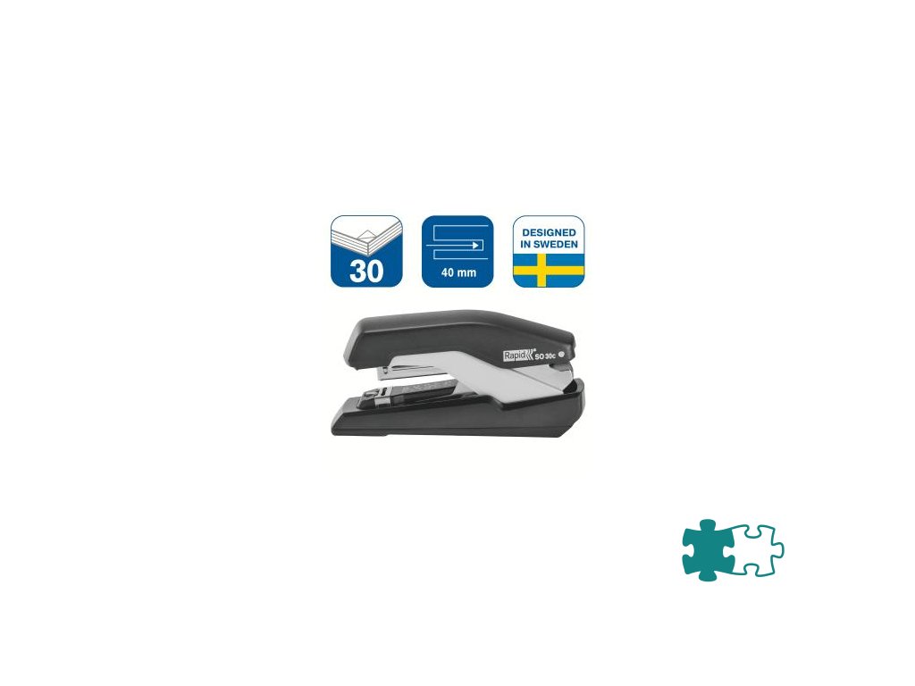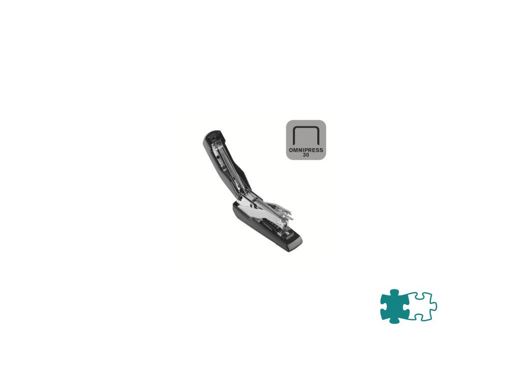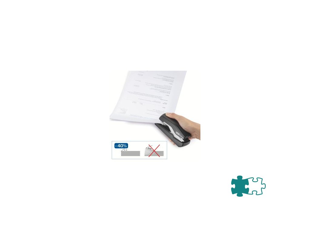 Revolučná kompaktná zošívačka, vybavená patentovanou technológiou Omnipress®, možno stlačiť kdekoľvek, aby ste ušetrili všetku námahu pri zošívaní, či už sa používa na stole alebo v ruke. Jedinečná technológia Super Flat Clinch znižuje stoh papiera o 40 %.Zošíva až 30 listov papiera (80 g/m2)