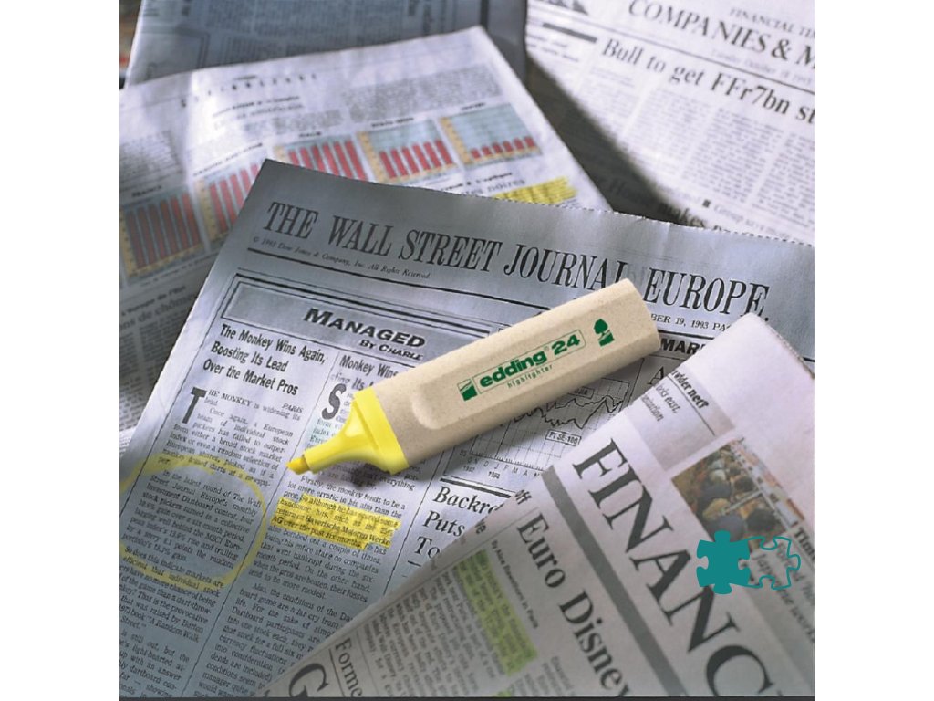 Minimálne 90% tela a uzáveru zvýrazňovača vyrobené z obnoviteľných zdrojov. Zvýrazňovač so zrezaným hrotom so šírkou stopy 2 - 5 mm. Pre zvýraznenie textových pasáží, poznámok a pod. Atrament na vodnej báze s intenzívnymi farbami. Dopĺňateľný atramentom HTK 25. Balenie 10 ks.Farba: žltá
