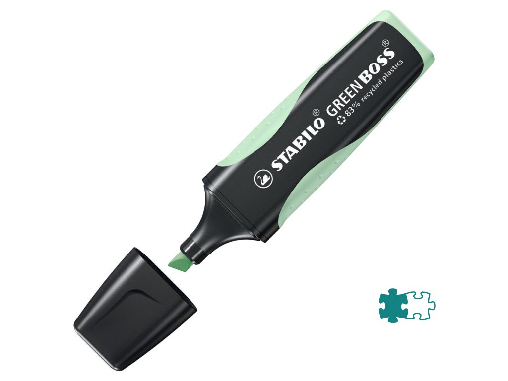 STABILO GREEN BOSS je zvýrazňovač vyrobený z 83% recyklovaného plastu pre školákov, študentov, učiteľov a kancelárskych pracovníkov, ktorí sú ohľaduplní k životnému prostrediu. Ekologický zvýrazňovač je k dispozícii v trendových pastelových a svetlých farbách! Technológia STABILO Anti-Dry-Out chráni pred vysychaním po dobu 4 hodín a zaisťuje koncentrovanú prácu. Značkuje a podčiarkuje v dvoch šírkach stopy 2 a 5 mm. Vďaka protišmykovej zóne úchopu leží bezpečne v ruke. Farba pastelová zelená. Väčšie balenie 10 kusov.- Zvýrazňovač vyrobený z 83 percent recyklovaného plastu